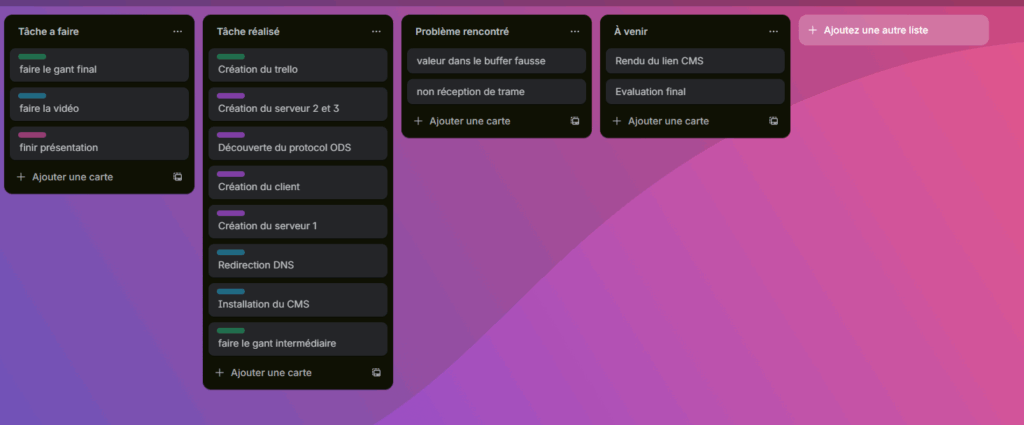 Trello nous a permis la planification, le suivi et la répartition du travail au sein de notre groupe. Bien entendu, il faut encore le compléter. C’est l’avantage de cet outil qui est flexible et dynamique.